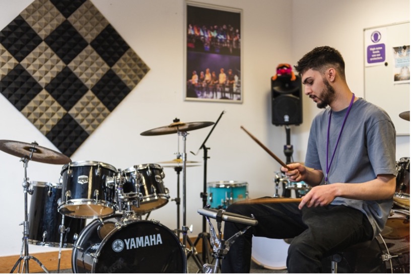 Zajęcia perkusyjne są szczególnie interesujące i ciekawe dla młodzieży, zależy nam aby uczniowie opanowali podstawowe bity na zestawie perkusyjnym oraz na etnicznych instrumentach perkusyjnych takich jak: konga, bongosy czy djambe a dla młodszych uczestników tej grupy również instrumenty orfa.